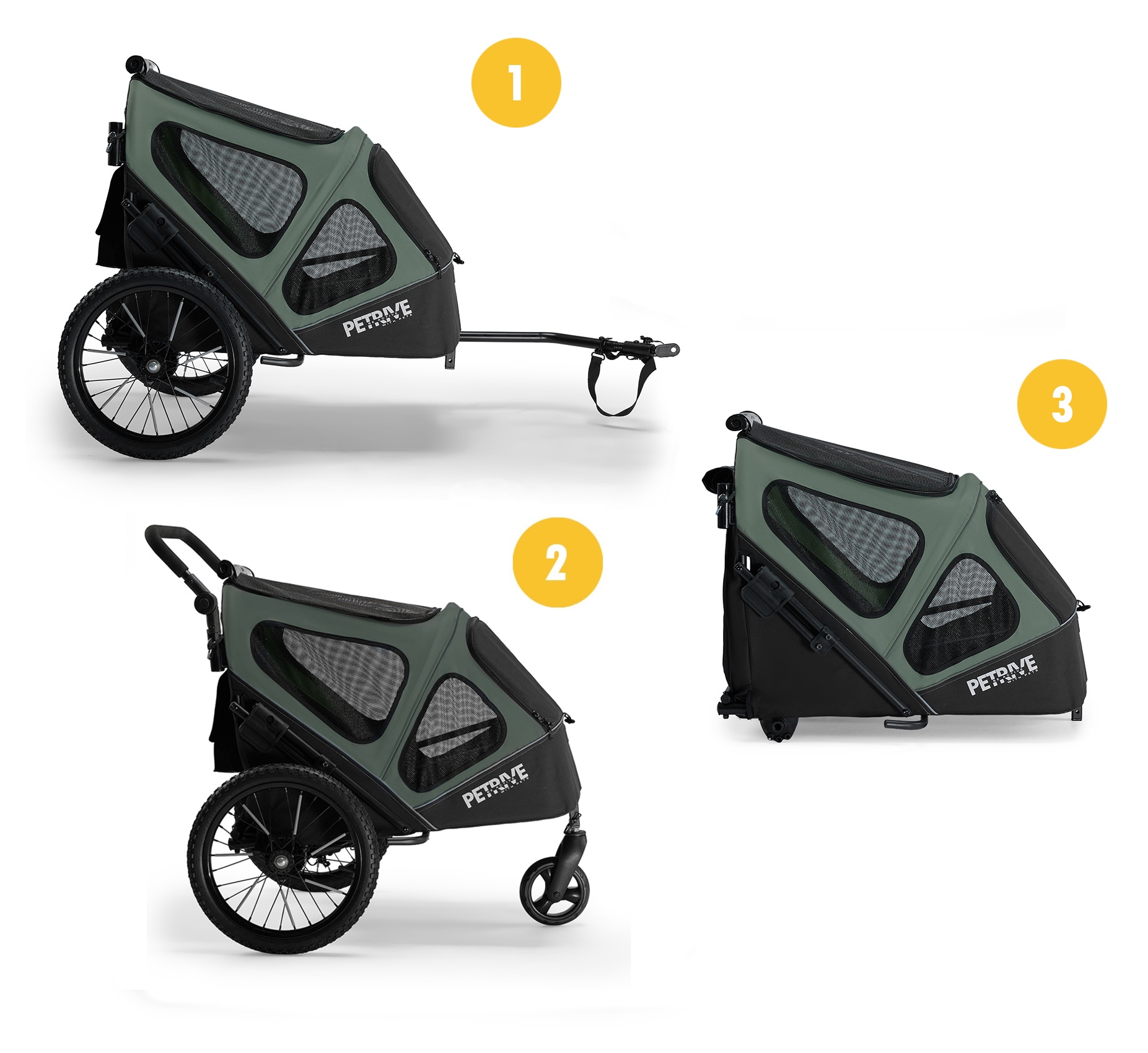 Der von uns angebotene Fahrradanhänger für Hunde bis 30 kg ist ein multifunktionaler 3in1-Wagen, der sich als Fahrradanhänger, Kinderwagen sowie großer Transporter für deinen Hund eignet.