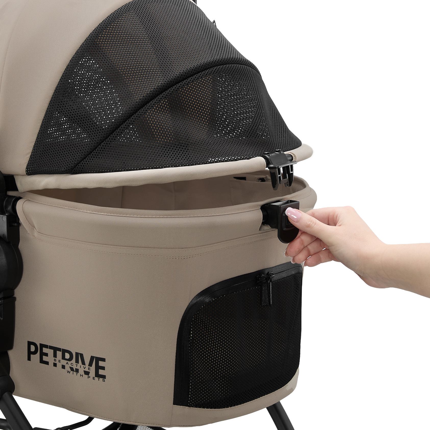 PETRIVE SRIDER 3in1 ist ein moderner Wagen für Hunde oder Katzen, der als Spazierwagen, Transportbox sowie Autositz genutzt werden kann. Die ideale Lösung für aktive Besitzer, deren Tiere keine langen Strecken selbst zurücklegen können, für Senioren unter Hunden und Katzen sowie für Ausstellungstiere.